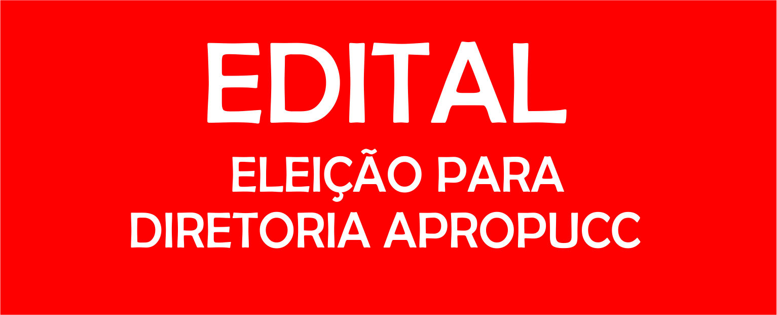 Pelo presente Edital, ficam os/as professores/as associados/as à Apropucc, em pleno exercício de seus direitos estatutários, convocados/as para a eleição que ocorre entre os dias 8 a 12 de novembro deste ano, por meio de votação eletrônica.