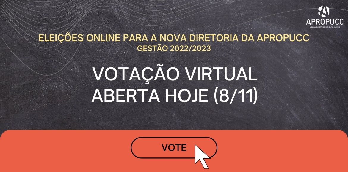 Começou hoje (8/11) a votação para a escolha da nova diretoria da APROPUCC para a gestão 2022/2023.