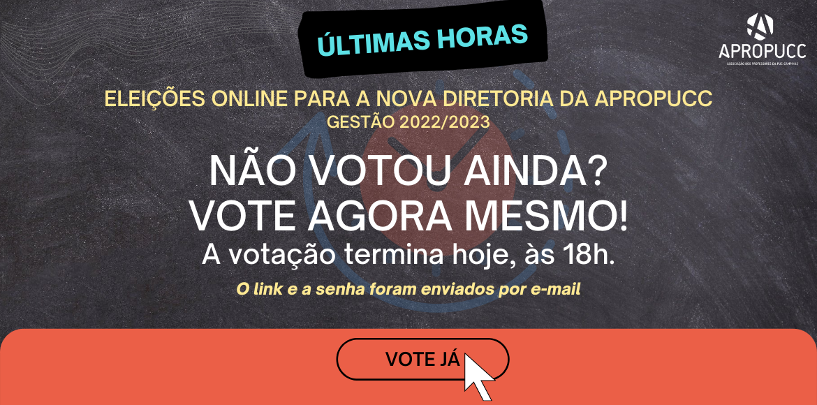 Hoje (12) é o último dia para escolher a diretoria da APROPUCC. E se você ainda não garantiu o seu voto, não deixe para a última hora… vote agora mesmo!