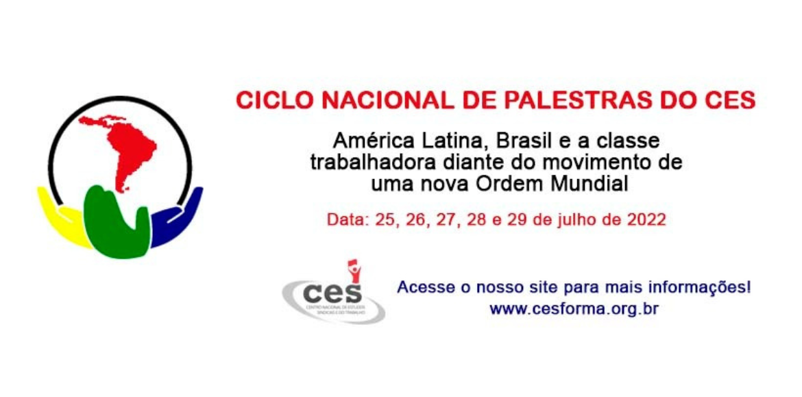 De 25 a 29/07 (períodos matutinos) será realizado o Ciclo Nacional de Palestras Formativas Remotas do Ces Estudos Sindicais.