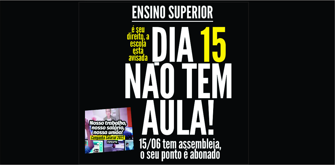 Portanto, conclamamos aos professores que participem em peso da Assembleia no dia 15. Pedimos à categoria que se mantenha de prontidão e atenta aos informes do Sindicato. Vamos à mobilização para o estado de greve e possível greve! Juntos somos mais fortes!