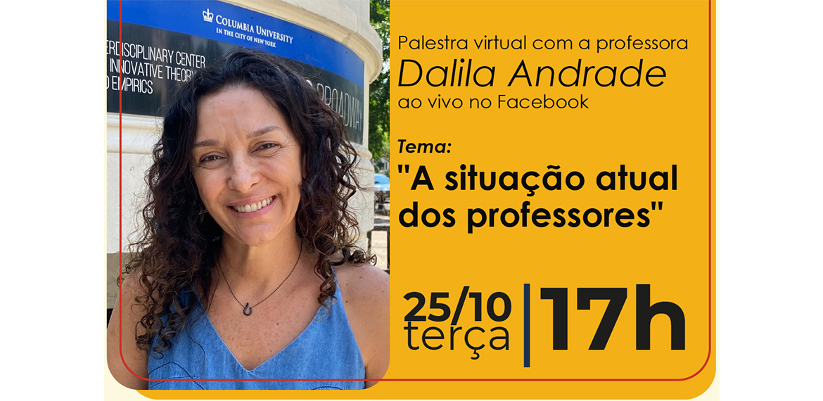 Na terça-feira (25/10), às 17h, acontece a palestra virtual “A Situação Atual dos Professores”, com a professora Dalila Andrade Oliveira, da UFMG