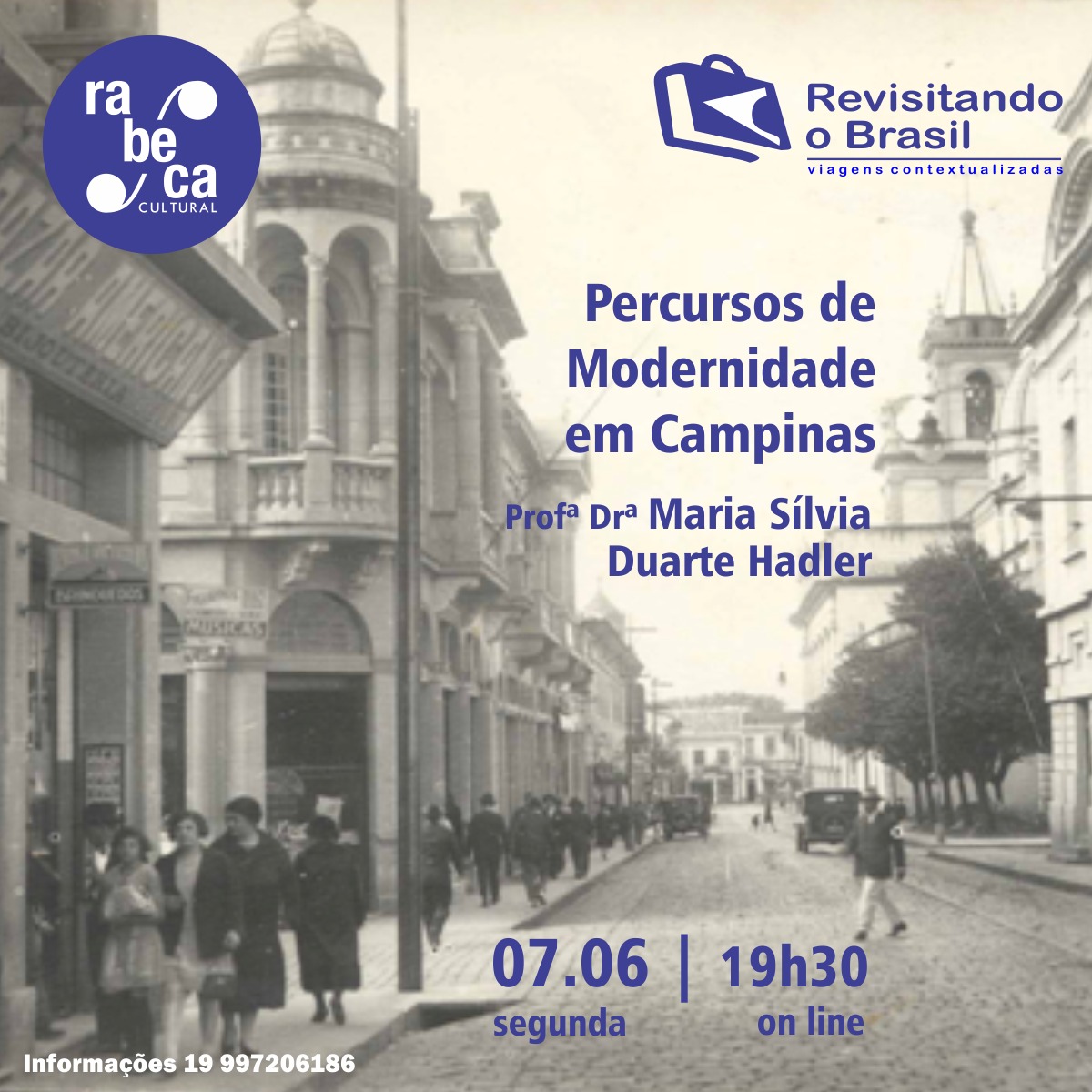 A Rabeca Cultural e o “Projeto Revisitando o Brasil – do Local ao Global, do Global ao Local – Viagens Contextualizadas” convidam para a videoconferência “Percursos de Modernidade em Campinas”.